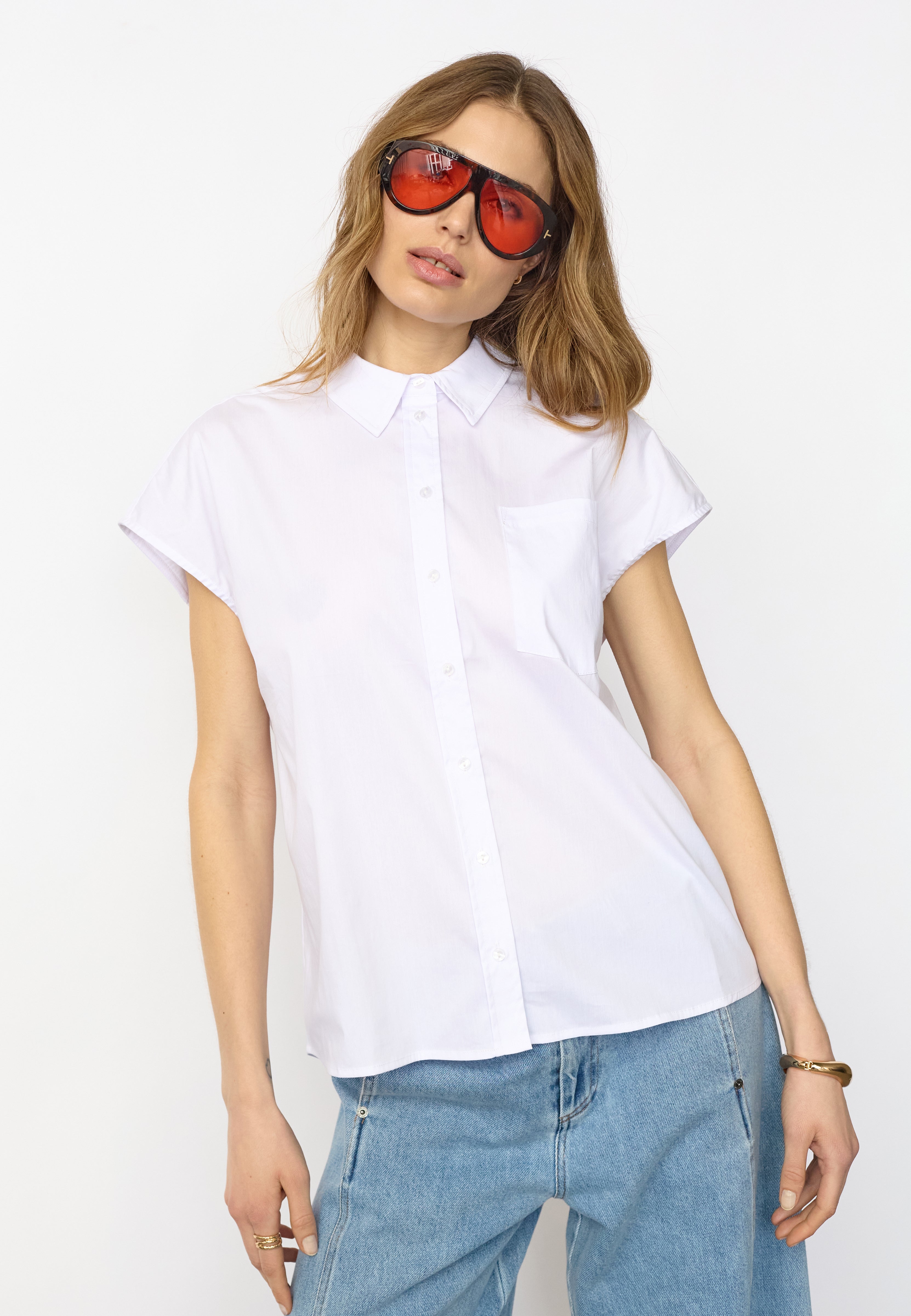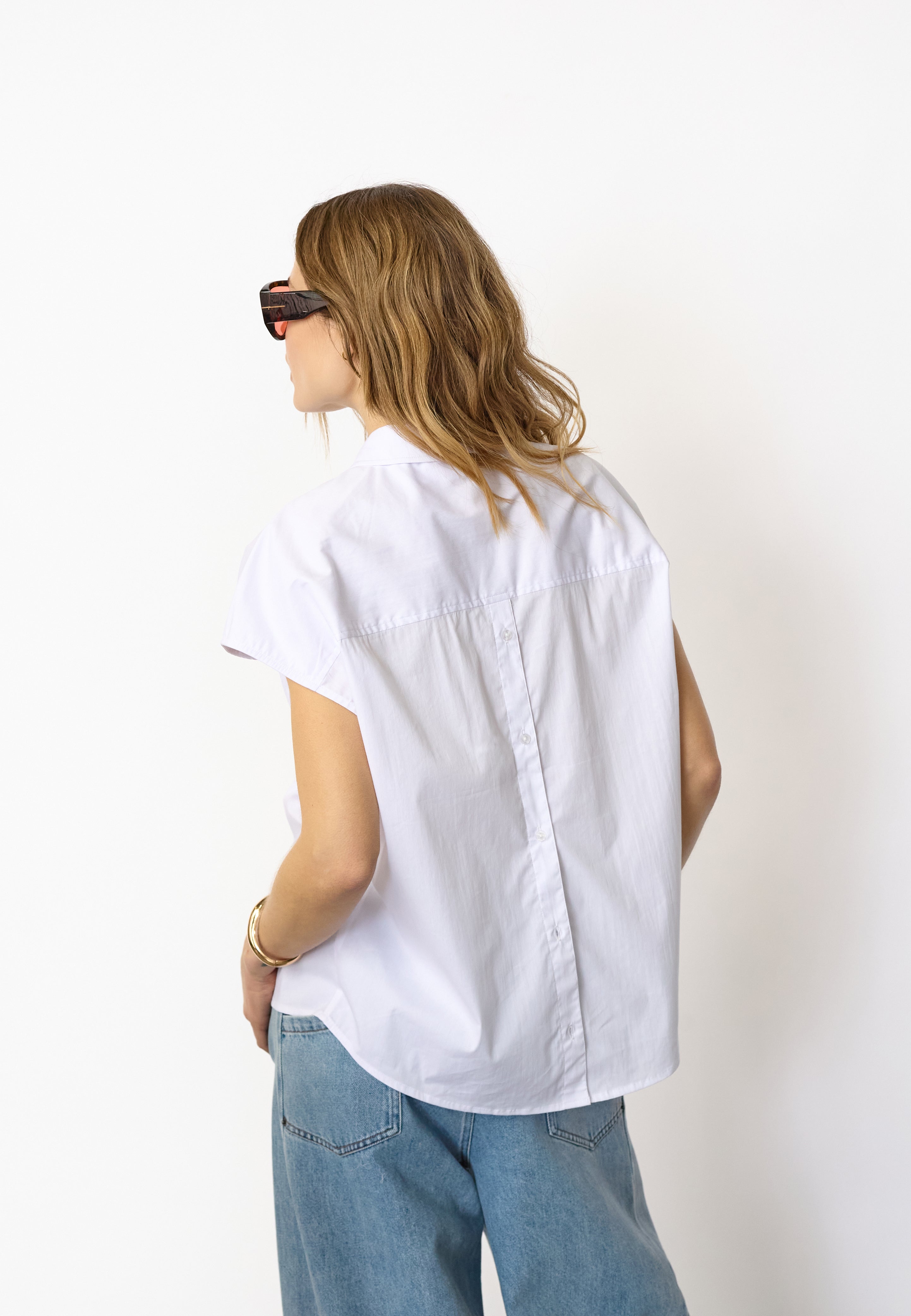 ElaraCC Slit Back SS Shirt - White